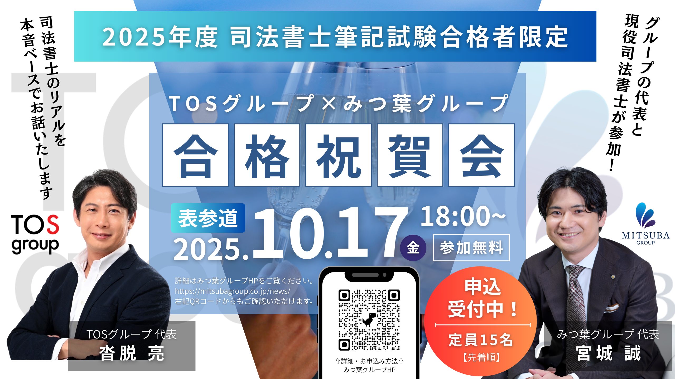 今回、10月17日に共催で司法書士試験合格祝賀会を開催します。